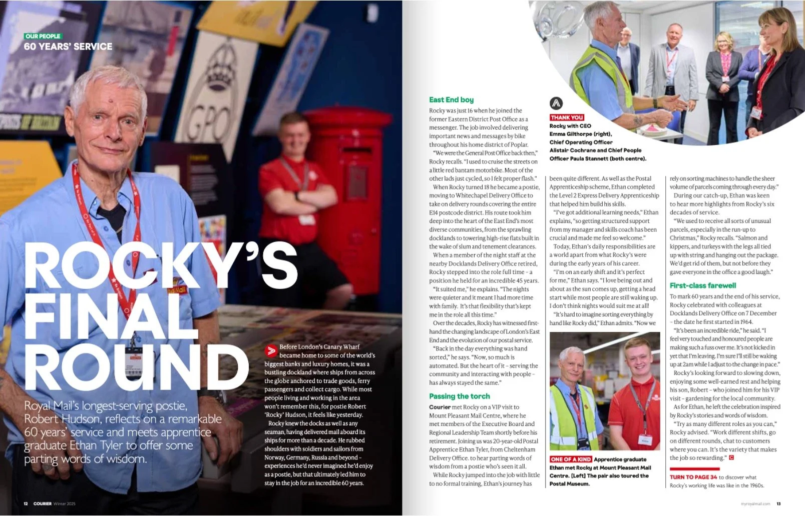 Courier is an award-winning publication keeping Royal Mail colleagues across the UK in touch with the people and projects shaping the business. It’s recognised – and respected – as the organisation’s key internal communications channel. Each edition features a vibrant selection of human-interest stories about colleagues and customers alongside updates from senior leaders on strategy, values and culture. As a contributing editor, I’ve travelled far and wide to interview frontline staff and senior executives across Royal Mail’s 140,000-strong workforce.